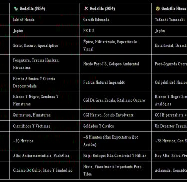 A continuación, y a manera de entender el contexto y el objetivo de este post, te presento una comparación crítica y cinematográfica entre la Godzilla original de 1954 y las versiones modernas más destacadas, particularmente la de 2014 (dir. Gareth Edwards) y la de 2023 (Godzilla Minus One, dir. Takashi Yamazaki):