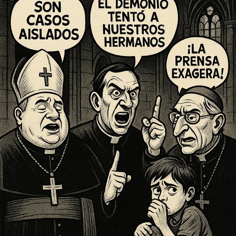 (*) Aunque no se encuentran declaraciones públicas verificadas con esas frases exactas (“Son casos aislados”, etc.), estas ideas sí están presentes en numerosos discursos, comunicados y reacciones institucionales: la minimización mediática, la atribución del problema a un “mal externo” espiritual, la insistencia en que solo unos pocos clerigos han pecado, y la acusación de que los medios exageran o buscan dañar la Iglesia.